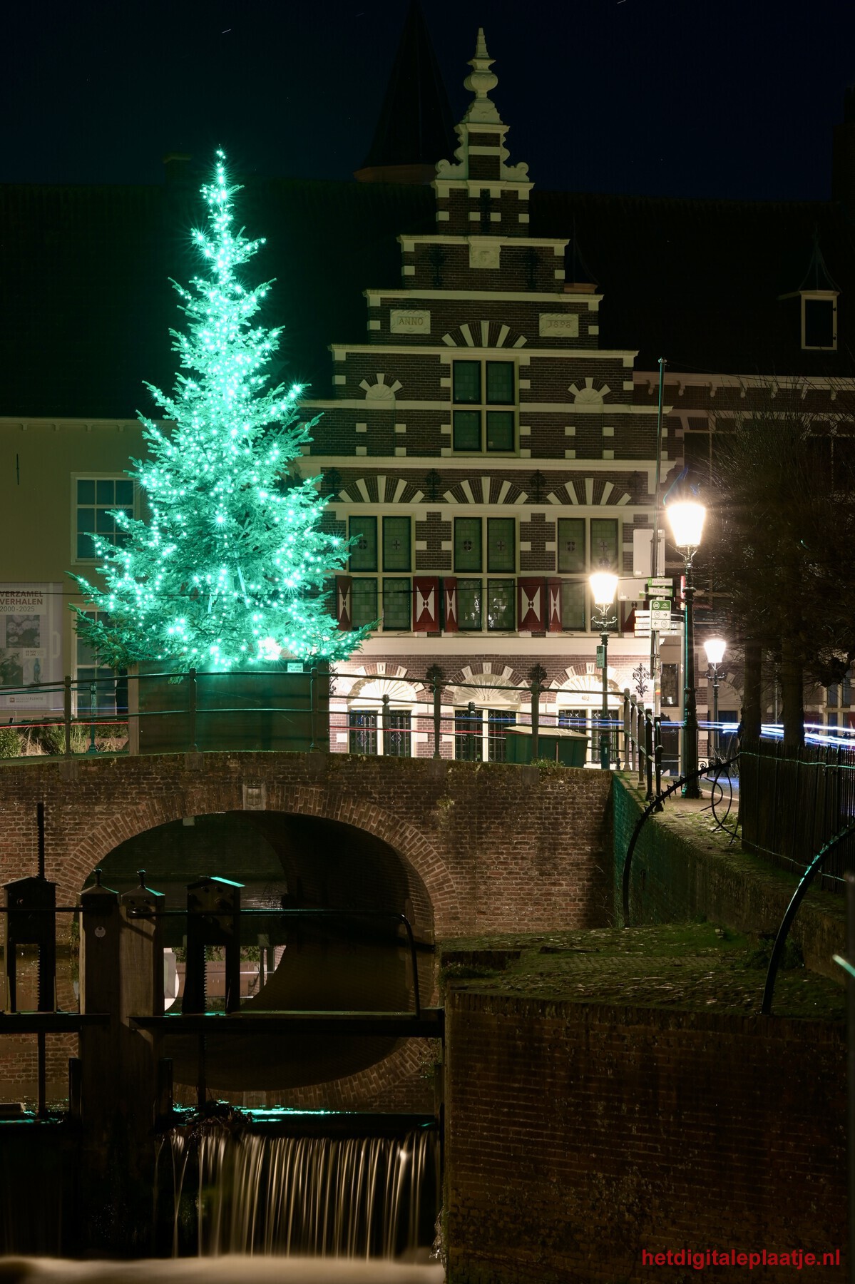 - Toelichting: Kerstboom voor Museum Flehite en op de voorgrond het kleine sluisje van de Eem. Foto genomen in de warme decemberdagen (3 graden celcius)!