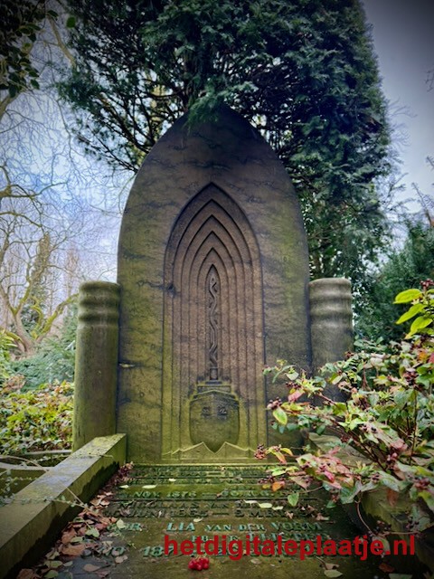 • Toelichting: Rode besjes op een oud graf op een begraafplaats in Rotterdam.