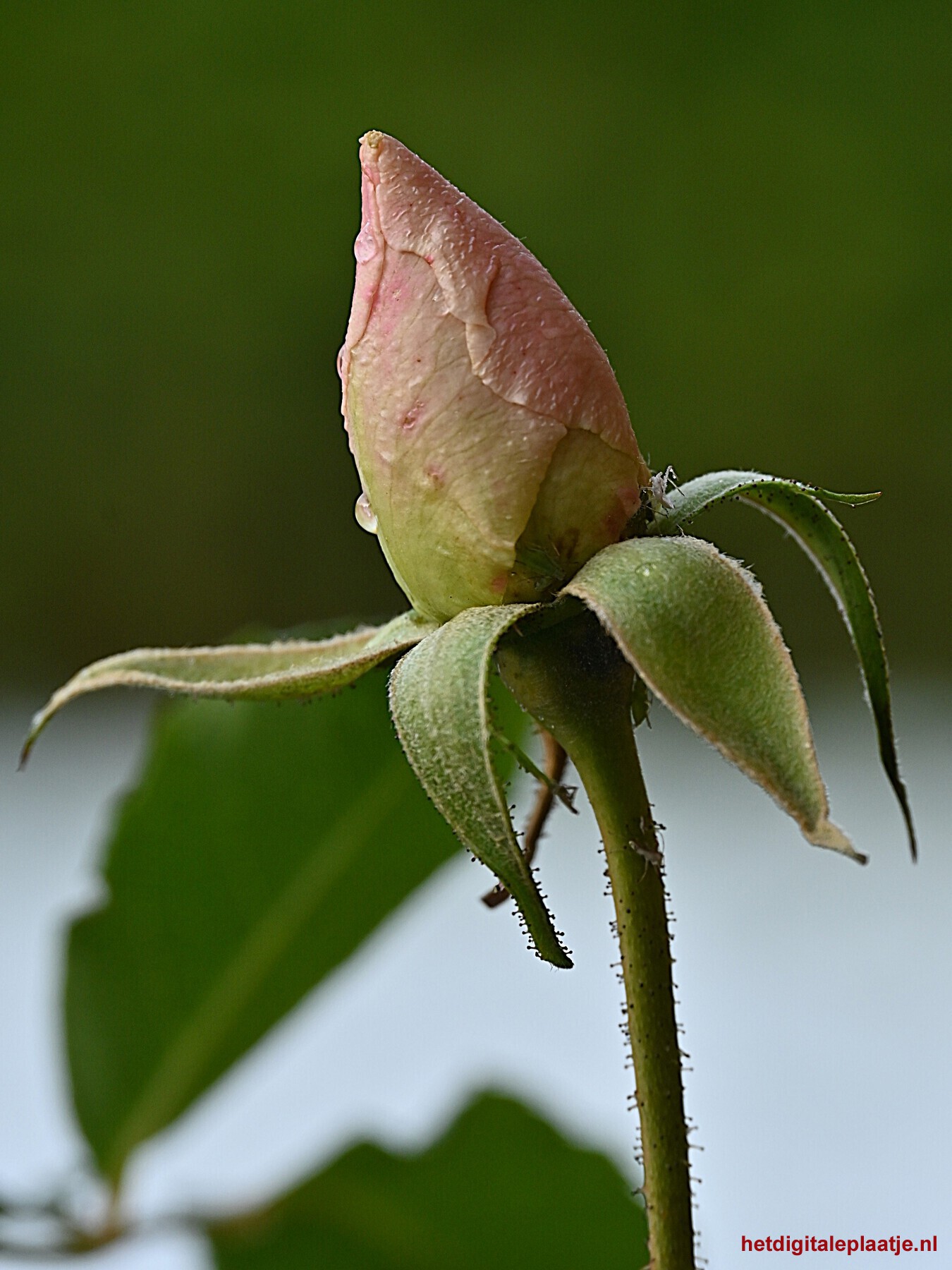 • Toelichting: Een rozenknop probeert het begin van de lente aan te kondigen en is op zoek naar warmte en zon. Het is nog te vroeg; vrieskou en sneeuw staat haar nog te wachten. Of ze het gaat redden, is nog de vraag.