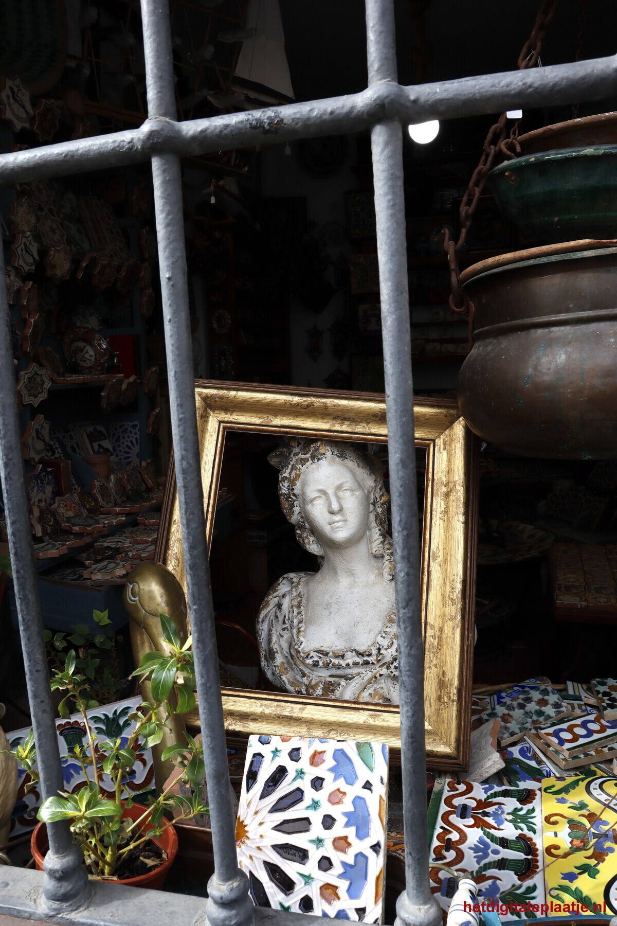 • Toelichting: Door de tralies van een raam in Ronda Andalusië fotografeerde ik een beeld. Zo is er een dubbel frame ontstaan: een gouden lijst over het beeld en de tralies die een tweede kader vormen.