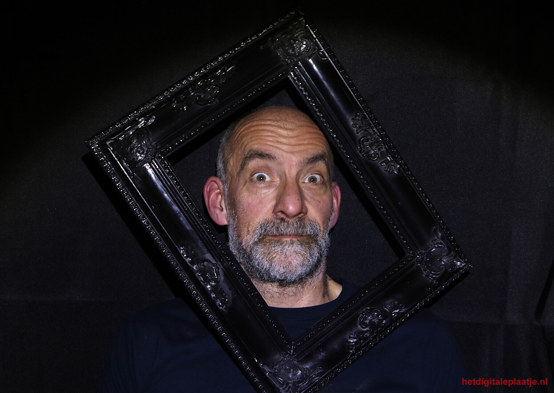 • Toelichting: Een speelse studie naar kadrering, waarin het onderwerp letterlijk zijn plaats inneemt binnen het beeld. Het kader wordt geen omlijsting, maar een actieve speler — met een kleine dosis zelfspot.