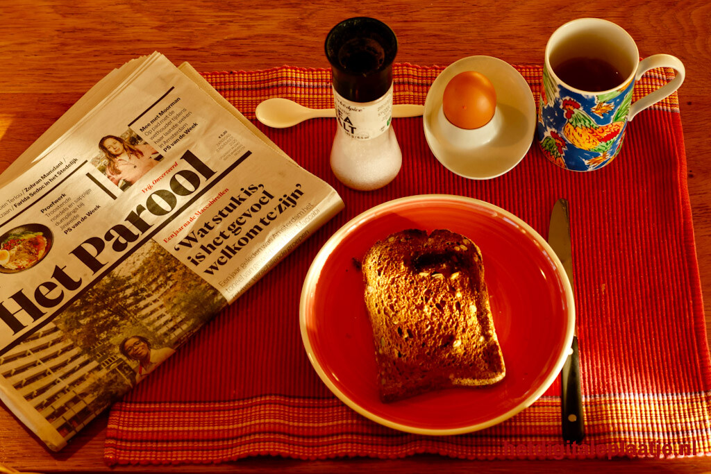 • Toelichting: Het zonlicht viel mooi diagonaal over de ontbijttafel