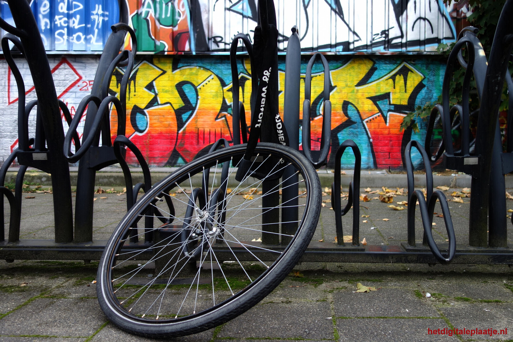• Toelichting: Op de voorgrond het achtergebleven fietswiel, gecombineerd met de wandschilderingen op de achtergrond geeft samen een mooi fotografisch beeld. Ik had de uitsnede iets ruimer moeten kiezen. Helaas is dat niet meer mogelijk. Weer wat geleerd, dus voor een volgende keer. Ik had de uitsnede iets ruimer moeten kiezen. Helaas is dat niet meer mogelijk. Weer wat geleerd, dus voor een volgende keer. Ik stond iets te dicht op het onderwerp naar mijn smaak achteraf. Weer wat geleerd, voor een volgende keer.
