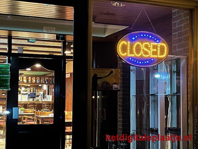 - Toelichting: Na sluitingstijd gaat de verlichting over van open naar closed. Binnen brandt het licht daar waar de gasten aten