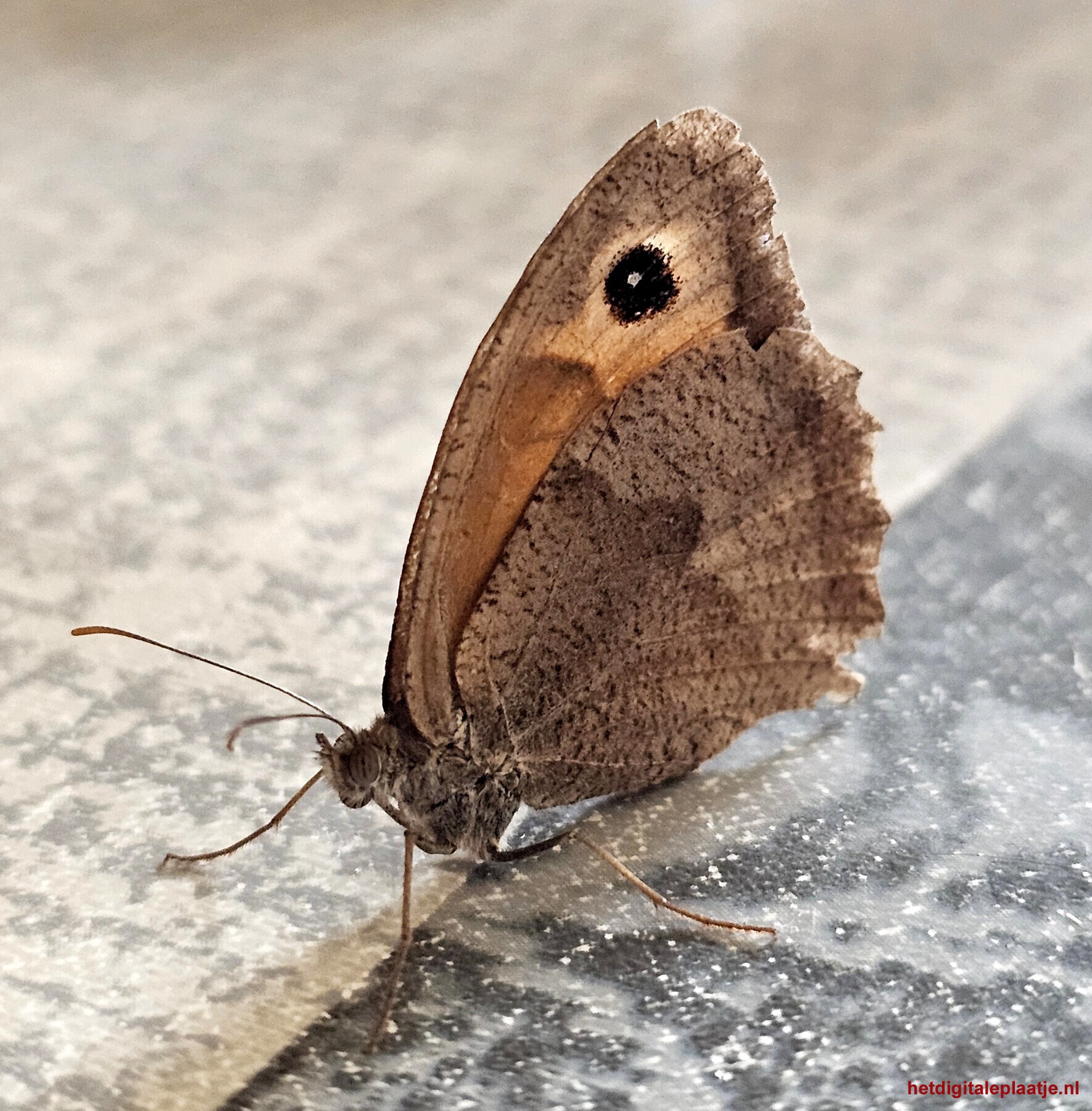• Toelichting: Dit mooie bruinoog vlindertje kwam zomaar voor mij poseren op de keukentafel :-)