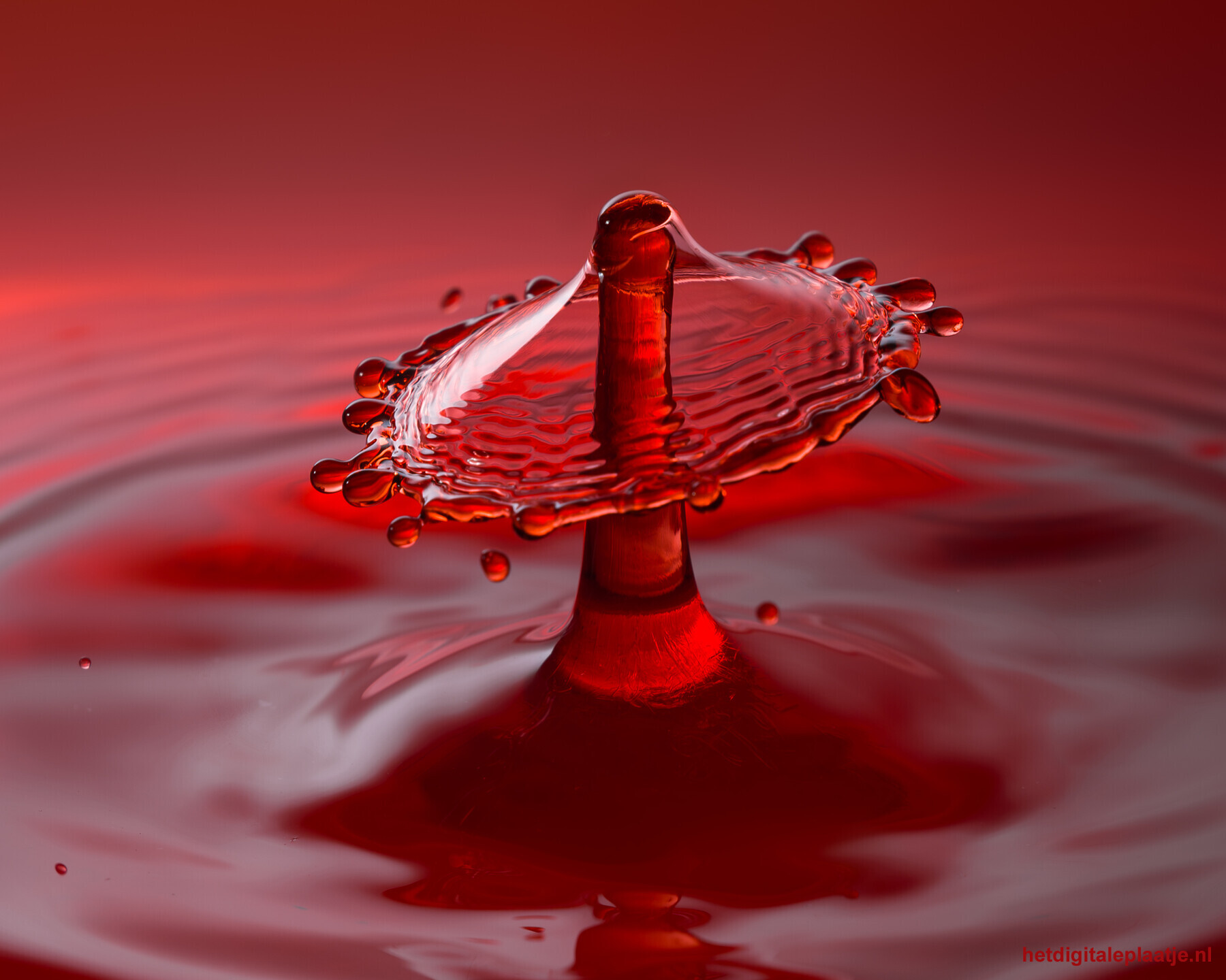 • Toelichting: Gemaakt met een 1 off-camera flitser, druppelpipet en rode kleurstof. Veel proberen, een beetje timing en ook wat geluk.