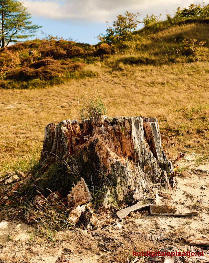 • Toelichting: in de duinen was alleen deze vermolmde stronk nog over van een eens grote denneboom