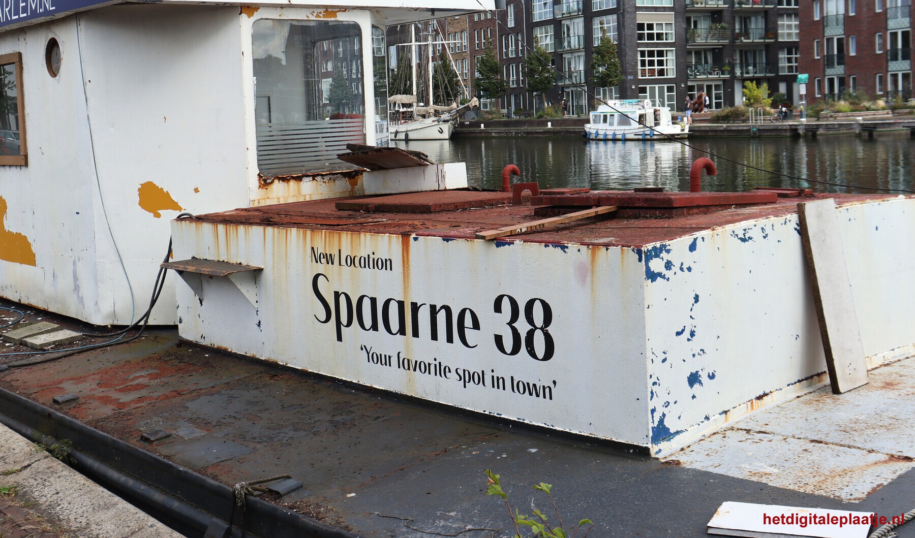 • Toelichting: Wat een contrast: ooit te water gelaten om op een mooie locatie een hotspot te zijn, nu een verlopen boot.